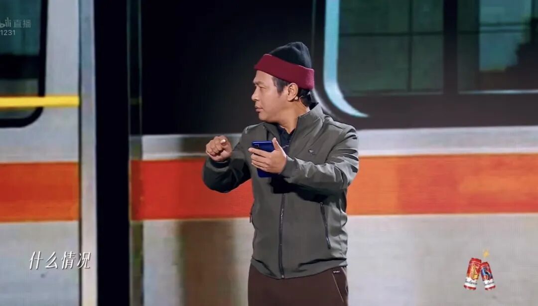 宋小宝在台上抿嘴,小声叨叨着演员还没来得及上台。这个意外引爆了全场,所有人笑得前仰后合,一番调整,重新就绪,宋小宝再次开演。